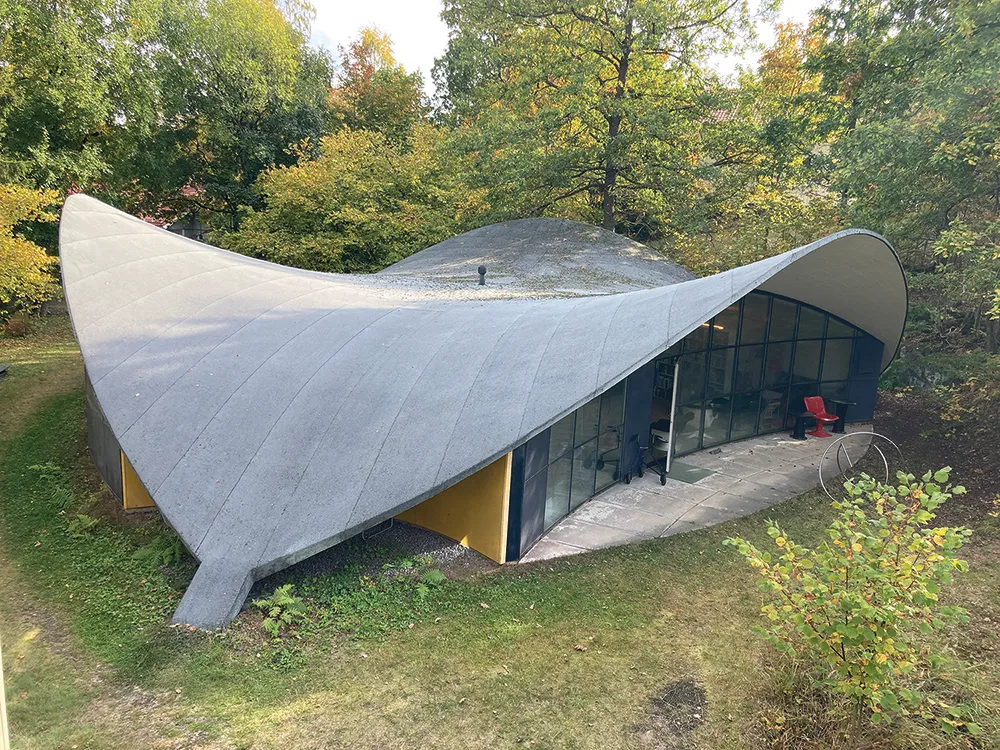 Yrjö Kukkapuro and architect Eero Paloheimo designed the studio building together. It was completed in 1968. The 200-square-metre space, built within a single concrete shell with no partition walls, is an exceptionally original structural experiment. Its futuristic and open-minded architecture has attracted international attention since its completion. Irmeli and Yrjö Kukkapuro’s studio is the birthplace of countless of pieces of furniture and art. This experimental and limitless atmosphere has given birth to an entire life’s work.