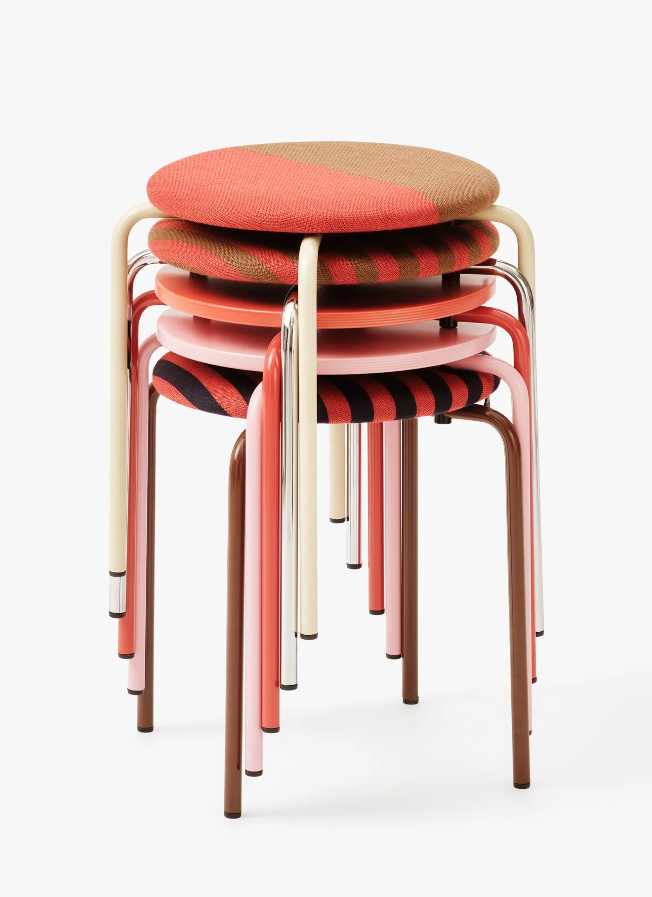 Now the small chair of the Moderno series, the classic L-28, has been stretched to its limits. The Danish master of colors, fashion designer Stine Goya made almost 40 different variations of the chair. Different materials and color combinations give each quiet chair its own character. You immediately want to start giving them nicknames. As if they don’t get their own conscious selves now.