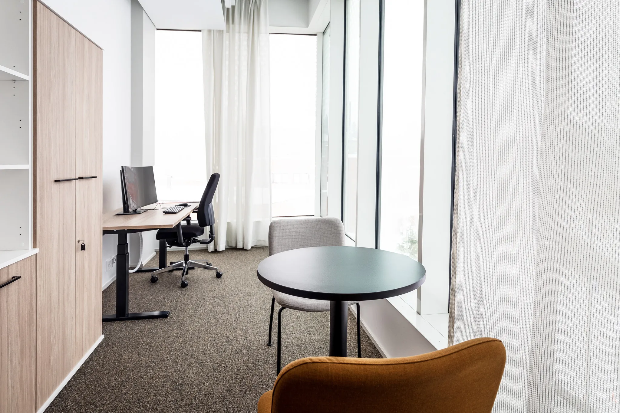 Haluamme tarjota asiakkaillemme vaihtoehtoja toimistokalusteisiin räätälöinnillä. Toimistokalusteiden pulverimaalatut metalliosat ovat saatavissa useissa eri sävyissä, pöydänkannet ja säilyttimet lukuisissa eri viilu- ja laminaattipintaisina, myös maalattuna. Tuotteet ovat täydennettävissä erilaisilla varusteilla kuten johtokouruilla, pistorasioilla ja ääntä akustoivilla ja tilaa jakavilla seinäkkeillä. Verhoillut tuotteet ovat verhoiltavissa kankaalla kuin kankaalla, tarvittaessa vaikka asiakkaan omalla.